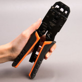 این محصول در ابعاد 17×60×205 میلی متر و وزن 550 گرم قابلیت پرس سوکت های بند خط و بند گوشی و شبکه را دارد. همچنین این آچار دارای قسمت سیم لخت کن می باشد که با استفاده از سیم لخت کن روی دسته این آچار میتوانید به راحتی سیمها و کابلهای گرد و تخت را لخت یا قطع کنید.