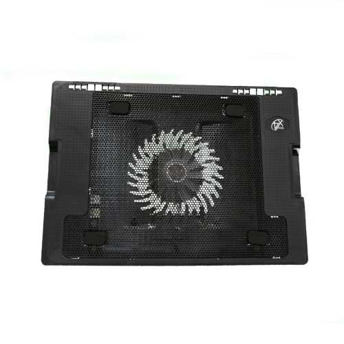 پایه خنک کننده (کولینگ پد) تنظیم ارتفاع تک فن دارای یک فن 140 میلی متری با حداکثر سرعت 1000 دور در دقیقه است. عمر این پنکه حداقل 40000 ساعت بوده و کاملا بی صدا و کم مصرف می باشد. داشتن موقعیت برای تغییر زاویه موقعیت یکی دیگر از ویژگی های آن است. کار با لپ تاپ یا سایر تجهیزات الکترونیکی دمای آنها را افزایش می دهد. این افزایش دما بر عملکرد دستگاه تأثیر منفی می گذارد. اگرچه فن داخل لپتاپ گرمای تولید شده توسط “CPU” را از بین میبرد و دما را تا حدودی کاهش میدهد، اما ترجیح داده میشود که هوای وارد شده، هوای خنک باشد تا هوای برگشتی توسط فن “CPU”. بنابراین لازم است هوای خنک تری از اطراف لپ تاپ توسط دستگاه خارجی به فضای زیر آن مکش شود. پدهای خنک کننده یا پدهای خنک کننده فضایی بین لپ تاپ و سطحی که روی آن قرار می گیرد ایجاد می کند و با کمک فن(های) آنها جریان هوا را به زیر لپ تاپ هدایت می کند. بنابراین نقش موثری در کاهش دمای لپ تاپ دارند. پایه خنک کننده (کولینگ پد) تنظیم ارتفاع تک فن دارای یک فن 140 میلی متری با حداکثر سرعت 1000 RPM است. با این سرعت، کاملا بی صدا عمل می کند و بیش از 40000 ساعت عمر می کند. برق لازم از طریق اتصال به پورت «USB» لپ تاپ تامین می شود. این فن در داخل یک بدنه فلزی و پلاستیکی “ABS” قرار گرفته است. وزن آن 365 گرم است. طول و عرض بدنه به ترتیب 335 و 260 میلی متر و ضخامت آن 25 میلی متر است. پایه خنک کننده تنظیم ارتفاع با این ابعاد می تواند لپ تاپ تا 15.6 اینچ را پشتیبانی کند.