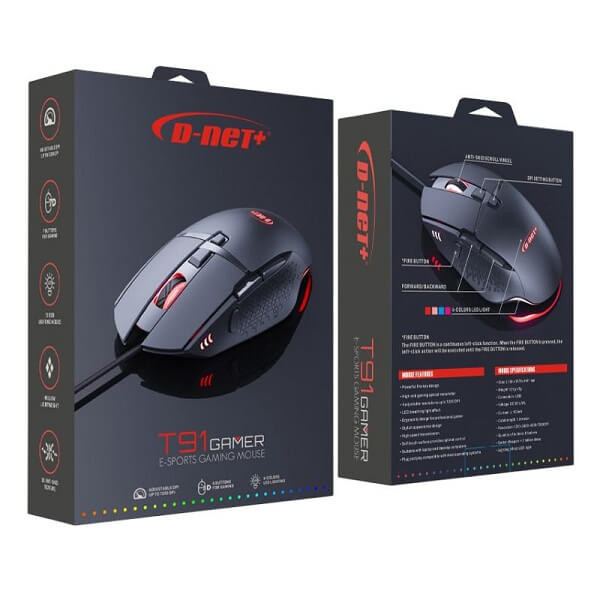 قیمت خرید موس گیمینگ RGB مدل T91 دی نت 7200 DPI