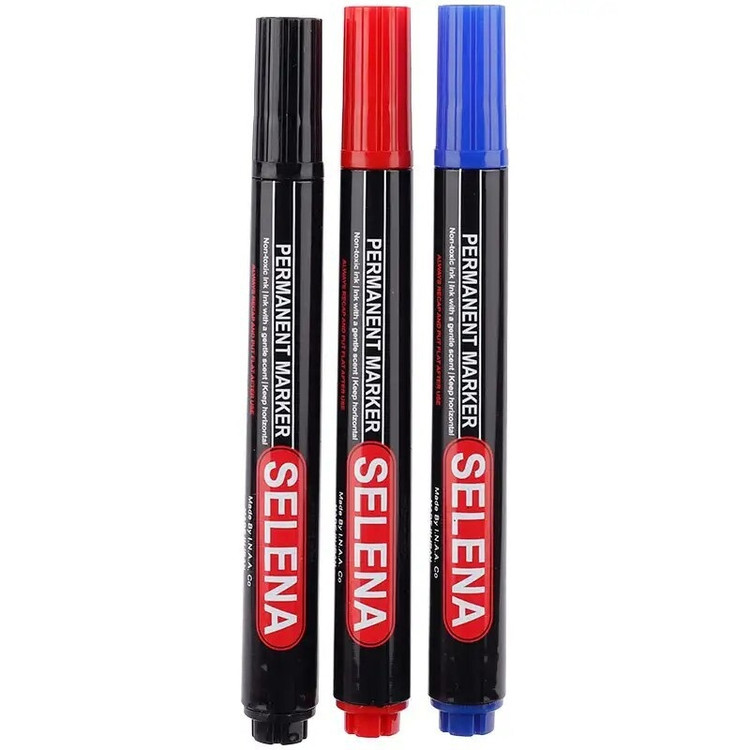 ماژیک جوهر ثابت سلنا نوک گرد آبی ، قرمز و مشکی