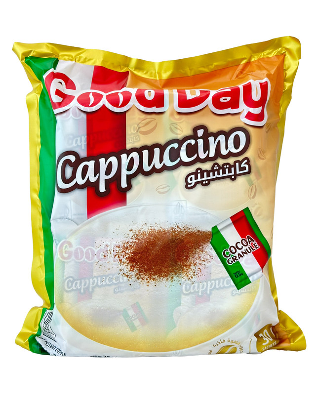 کاپوچینو گود دی یک قهوه فوری ۳ در ۱ است که از قهوه، شکر و شیرخشک درست میشود. این محصول در بستههای 30 ساشهای ۲۵ گرمی به بازار عرضه میشود. کاپوچینو گود دی یک نوشیدنی گرم و خوشمزه است که به سرعت و به آسانی آماده میشود. این نوشیدنی برای افرادی که به دنبال یک قهوه سریع و راحت هستند، مناسب است.