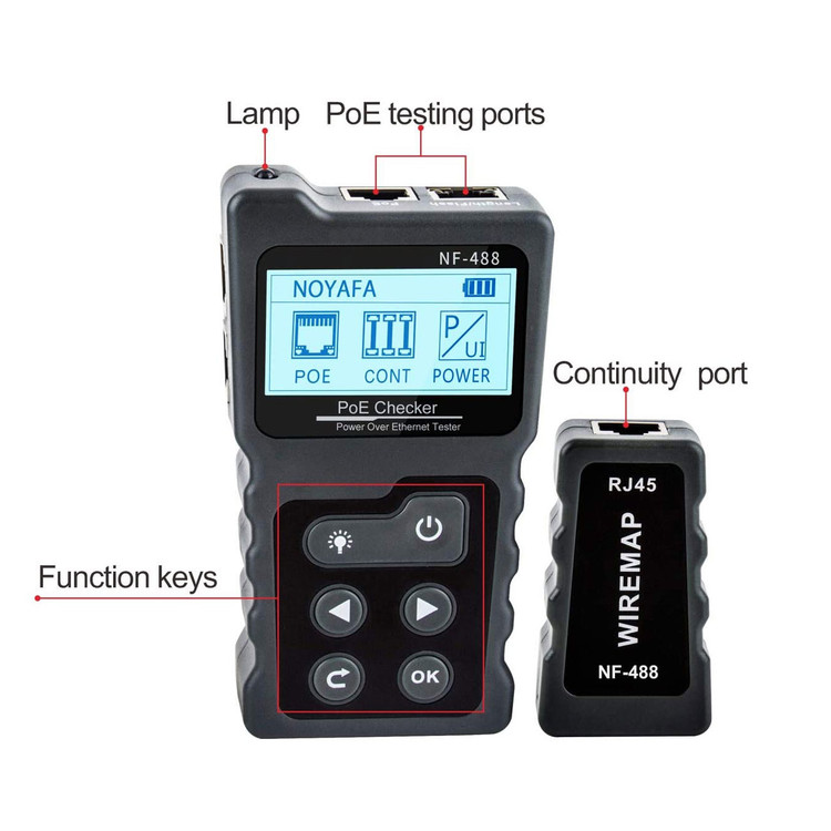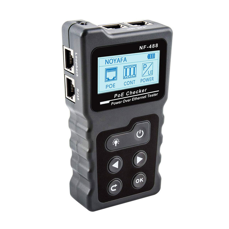 تستر درون خطی شبکه مدل NF-488 از دو بخش تشکیل شده است : یکی امیتر و دیگری کنترل از راه دور و دارای عملکردهایی مانند تشخیص تجهیزات POE استاندارد و غیر استاندارد ، تست آنلاین برق POE ، تست تداوم کابل شبکه ، تست برق DC ، تست حلقه برگشتی سوئیچ و سایر عملکردها می باشد . بنابراین برای نظارت ، سیم های ارتباطی ، سیم کشی یکپارچه و سایر سیستم های جریان ضعیف بسیار کاربردی می باشد .