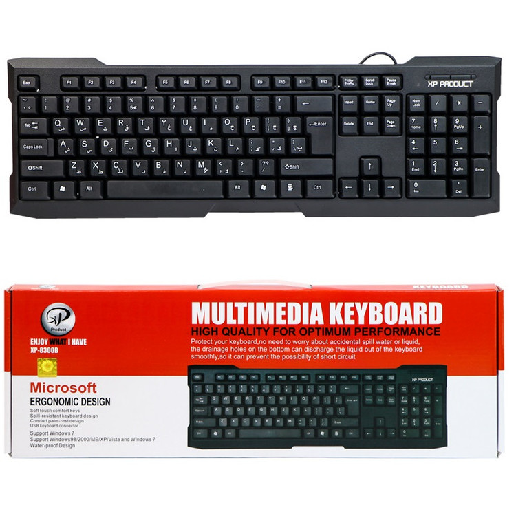 کیبورد یا صفحه کلید را می توان کاربردی ترین لوازم جانبی رایانه نام ببریم.کیبوردها با توجه به نوع استفاده و طراحی که دارند به انواع مختلف تقسیم می شوند.کیبورد ها معمولا به صورت باسیم و بی سیم به رایانه متصل می شوند و شما را در انجام فعالیت های رایانه ای همراهی می کنند.کیبورد مدل 8300 یک محصول بسیار زیبا از شرکت ایکس پی است که از طریق درگاه USB به رایانه شما متصل می شود.این کیبورد دارای برچسب فارسی میباشد که هنگام استفاده از آن احساس راحتی خواهید کرد